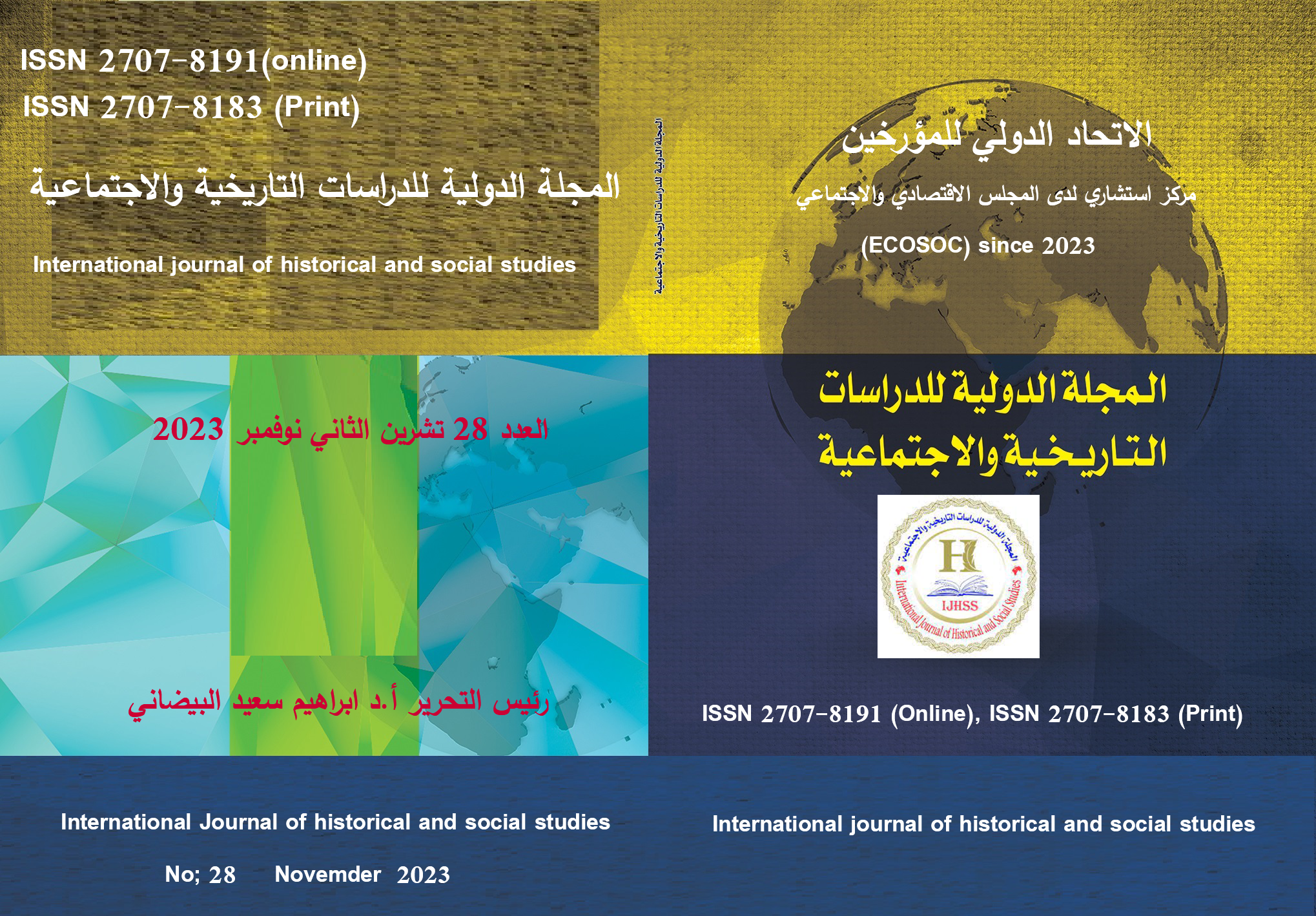 الاتحاد الدولي للمؤرخين تحمل رقم دولي. ISSN:2707-8183 تحمل عنوان المجلة الدولية للدراسات التاريخية والاجتماعية.