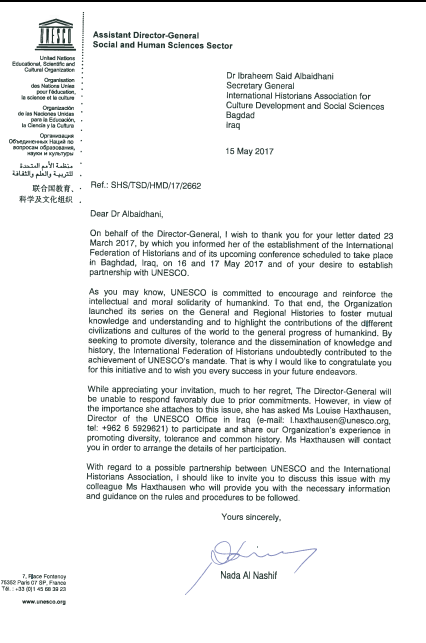 اليونسكو تبارك تأسيس الاتحاد الدولي للمؤرخين وصلت ... اقرأ أكثر